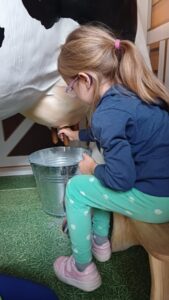 OBORA- Mieszka tu nasza krowa Benia, która daje pyszne mleko. Pomóż naszej gospodyni ją wydoić.
