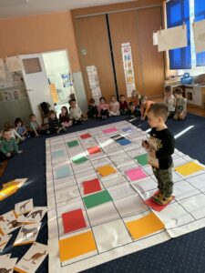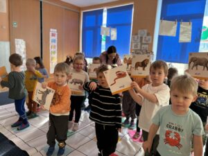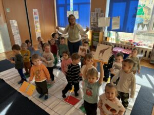 Dzieci z grupy „Żabki” podczas zajęć pt. „Zakodowane zwierzęta” bawiły się znakomicie rozwijając logiczne myślenie, spostrzegawczość oraz umiejętność współpracy. Wykonywały zadania polegające na odczytywaniu i prostych kodów, które prowadziły do odkrywania różnych zwierząt. Ćwiczyliśmy orientację w przestrzeni, koncentrację oraz kodowanie na dywanie z wykorzystaniem kolorowych kartek i obrazków. Zajęcia dostarczyły dzieciom wiele radości, a jednocześnie wspierały rozwój kompetencji matematycznych w przyjaznej, zabawowej formie. Ta forma zajęć na pewno będzie towarzyszyć nam w dalszej pracy dydaktycznej:)