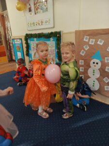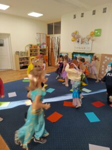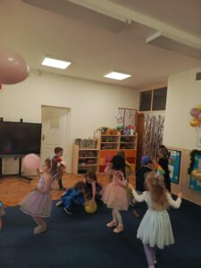 Dzieci przybyły na bal w barwnych i pomysłowych strojach. Wśród uczestników można było spotkać księżniczki, superbohaterów, zwierzątka, wróżki oraz postacie z ulubionych bajek. Przedszkolaki z wielkim entuzjazmem brały udział we wspólnych zabawach tanecznych, konkursach oraz animacjach prowadzonych przy wesołej muzyce.