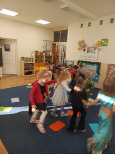 W naszym przedszkolu w grupie Motylków odbył się długo wyczekiwany bal karnawałowy. Tego dnia sala przedszkolna zamieniła się w kolorową, bajkową krainę pełną muzyki, tańca i radości.